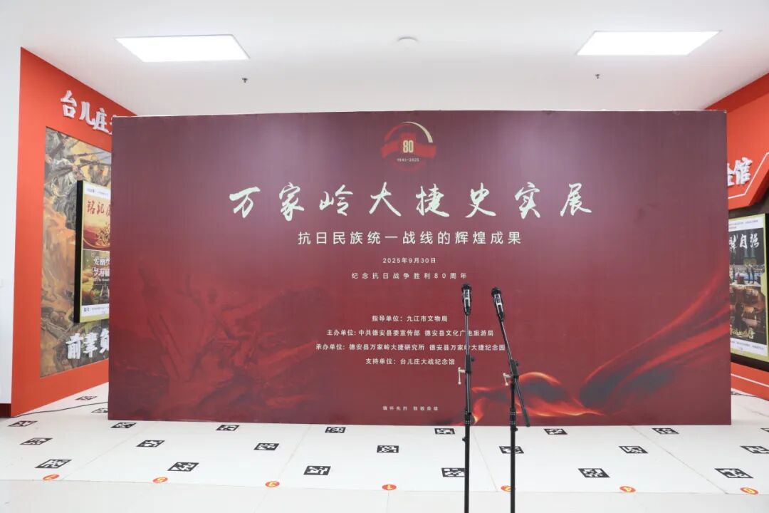2025年9月30日上午,时值第十二个中国烈士纪念日、中国人民抗日战争暨世界反法西斯战争胜利80周年之际,“万家岭大捷史实展”开展仪式在台儿庄大战纪念馆隆重举行。此次展览由九江市文物局指导、台儿庄大战纪念馆的特别支持,由中共德安县委宣传部与德安县文化广电旅游局共同主办;德安县万家岭大捷研究所与万家岭大捷纪念园承办。此次展览是推动两地红色资源交流共享、弘扬伟大抗战精神的重要实践。
