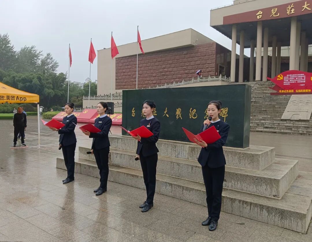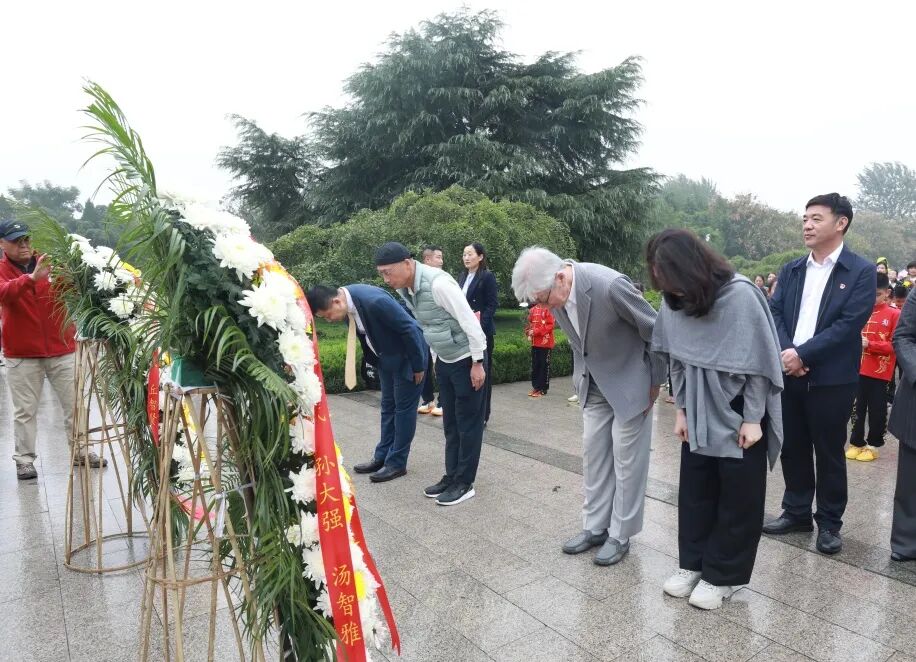 捐赠仪式后,台儿庄大战将士后人向台儿庄大战纪念碑敬献花篮。全体人员肃立,向台儿庄大战中英勇牺牲的烈士默哀,并依次敬献鲜花,表达对先烈的敬仰之情。