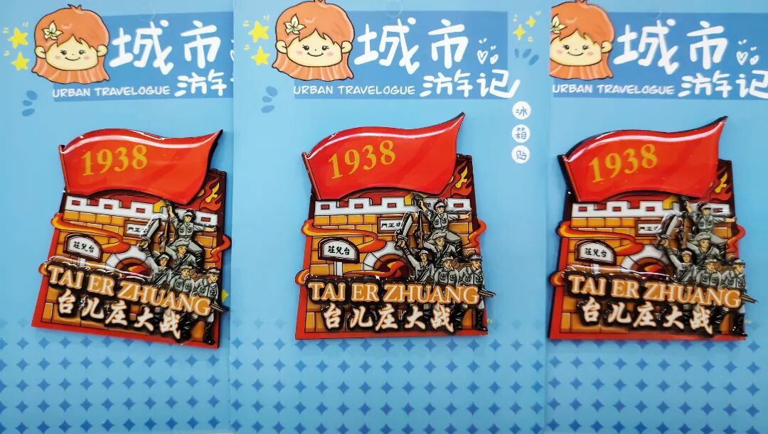 文创好物品类丰富:台儿庄大战主题帆布包、纪念文具,战地明信片、故事书、笔记本、冰箱贴,还有本地特色土特产品等。